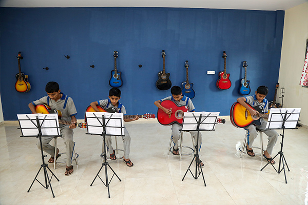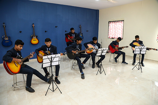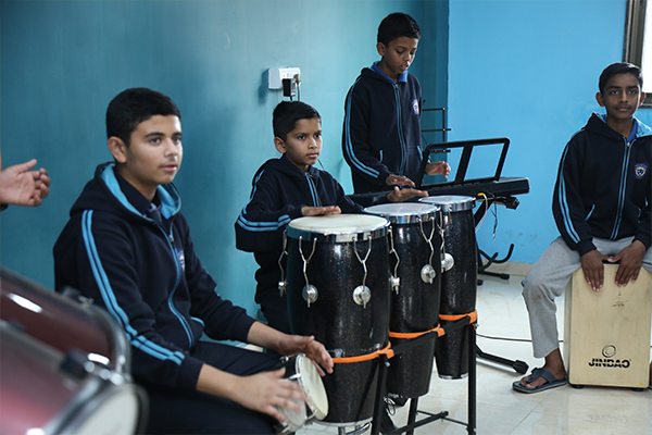 Music is given prime importance as part of the school curriculum. Our school boasts of a highly accomplished music staff and a well-equipped music room in the school campus. Every child is encouraged and nurtured to learn at least one musical instrument starting from Grade 3. This, however, is an optional subject at the Senior Secondary Level owing to the extent of the curriculum in these classes. The school staff and management are clearly aligned in the schools' vision of having a strong and consistently recognized music program within the school.