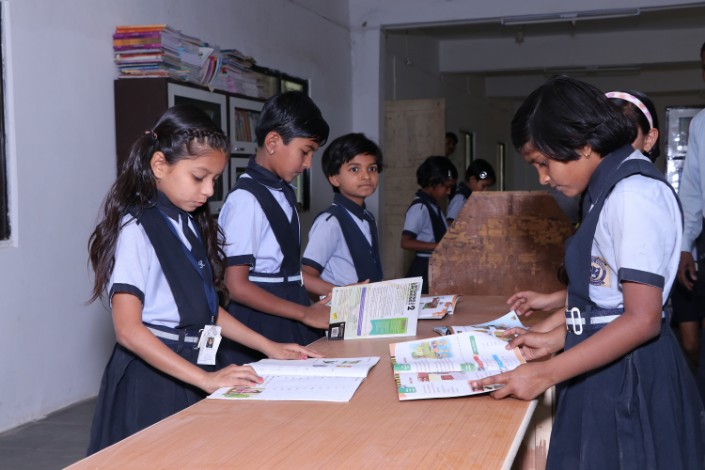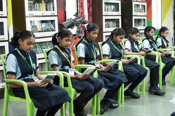 A library is a very important part of a school as it helps students to gain and acquire knowledge. It is the heart and soul of a school as it provides lots of information and details that students would require. From small storybooks to large reference books, journals and magazines are all available in our library. They are all arranged in different sections so that it becomes easy for those who search for a particular book. It helps students refer notes that they are looking for and helps in cultivating a reading habit too.